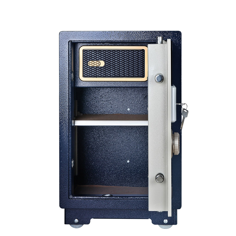 電子式保險柜是比較常見的一個類型。而一般打不開是由于連續三次錯碼輸入觸發防盜報警后鍵盤鎖閉,這樣最簡單,等一段時間后鍵盤自動解開鎖。如果是電池沒電,用上備用電源充電之后打開。或者使用購買時配的應急鑰匙和主鑰匙一起打開。